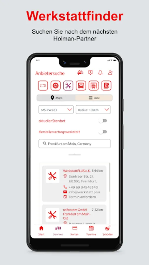 You can report damage simply and easily directly from the app - supplemented by pictures and notes on old damage. If you need support, you can contact our experts by phone directly from the app