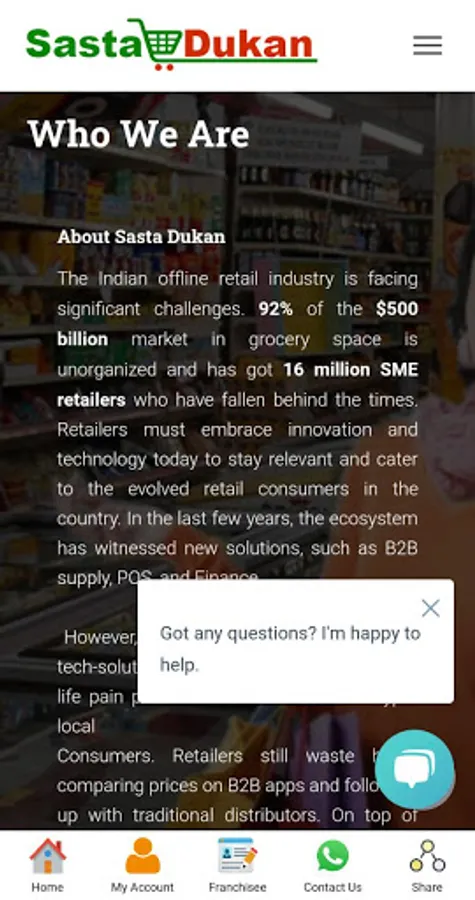 Every professional at SastaDukan works passionately with a singular company philosophy of treating every retail outlet as “Meri Apni Dukan”.