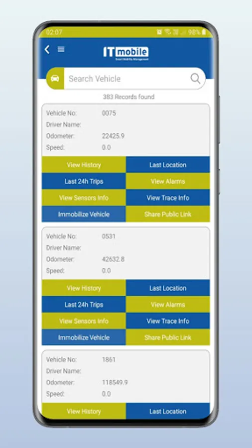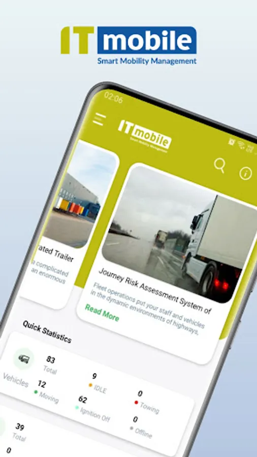 SmartFleet application is the mobile interface of the web application: https://smartfleet.itmobileafrique.com/. This application allows the users to have a live monitor of their vehicles and get alerted under certain conditions. Besides, it provides some simple reports to be be viewed through their tablet/smart phone devices.