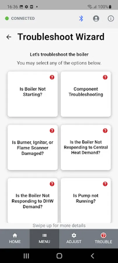 • Bluetooth Adaptor connects boiler to USB-Connect App.