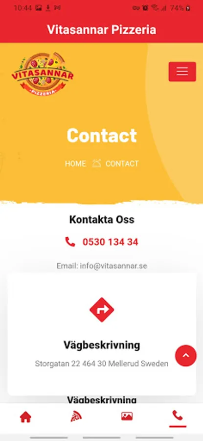 Det är en digital meny från Pizzeria Vita Sannar i Mellerud