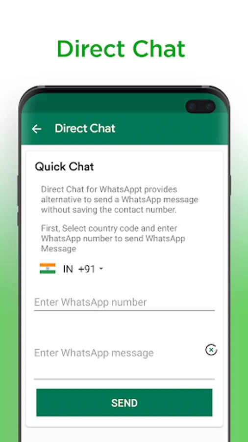 ✤ Direct Chat : for WhatsApp provides alternative to send a WhatsApp message without saving the contact number.