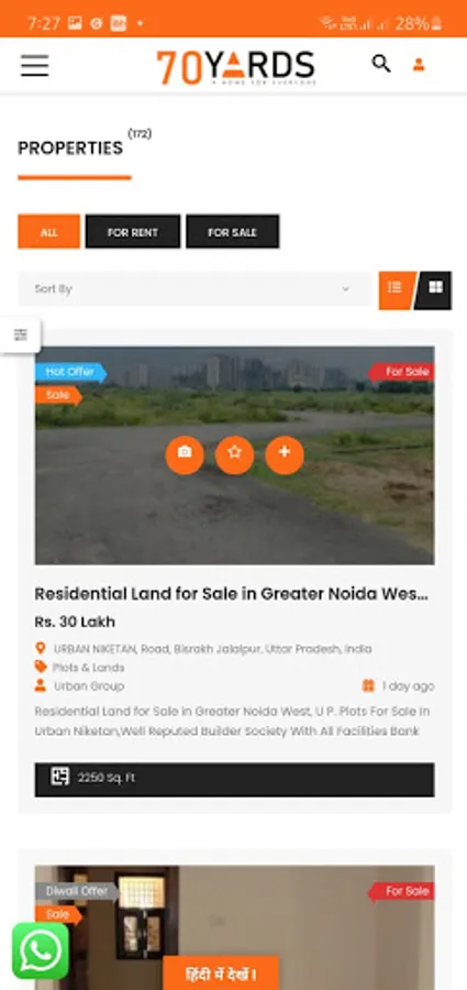 70Yards.com is a leading property portal in India with a mission to provide affordable homes to common people of India. 70Yards mobile app will let you search the best affordable property in your preferred location for rent, sale or purchase with easy to use search tool. You can freely list your any number of properties including apartments or flats, plots, villas, independent houses, and commercial properties like shops, offices, warehouses, factories etc.
