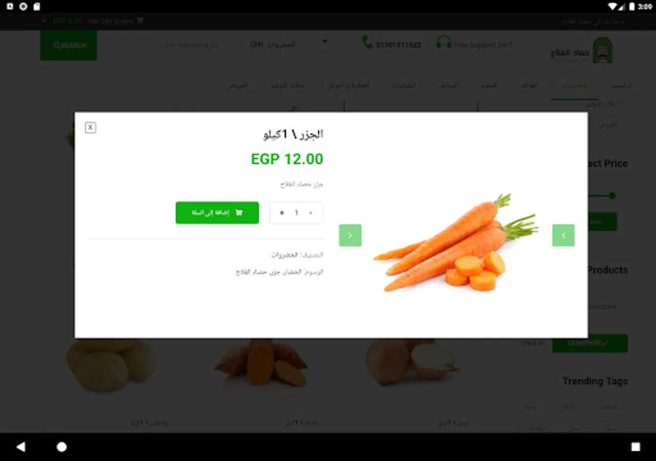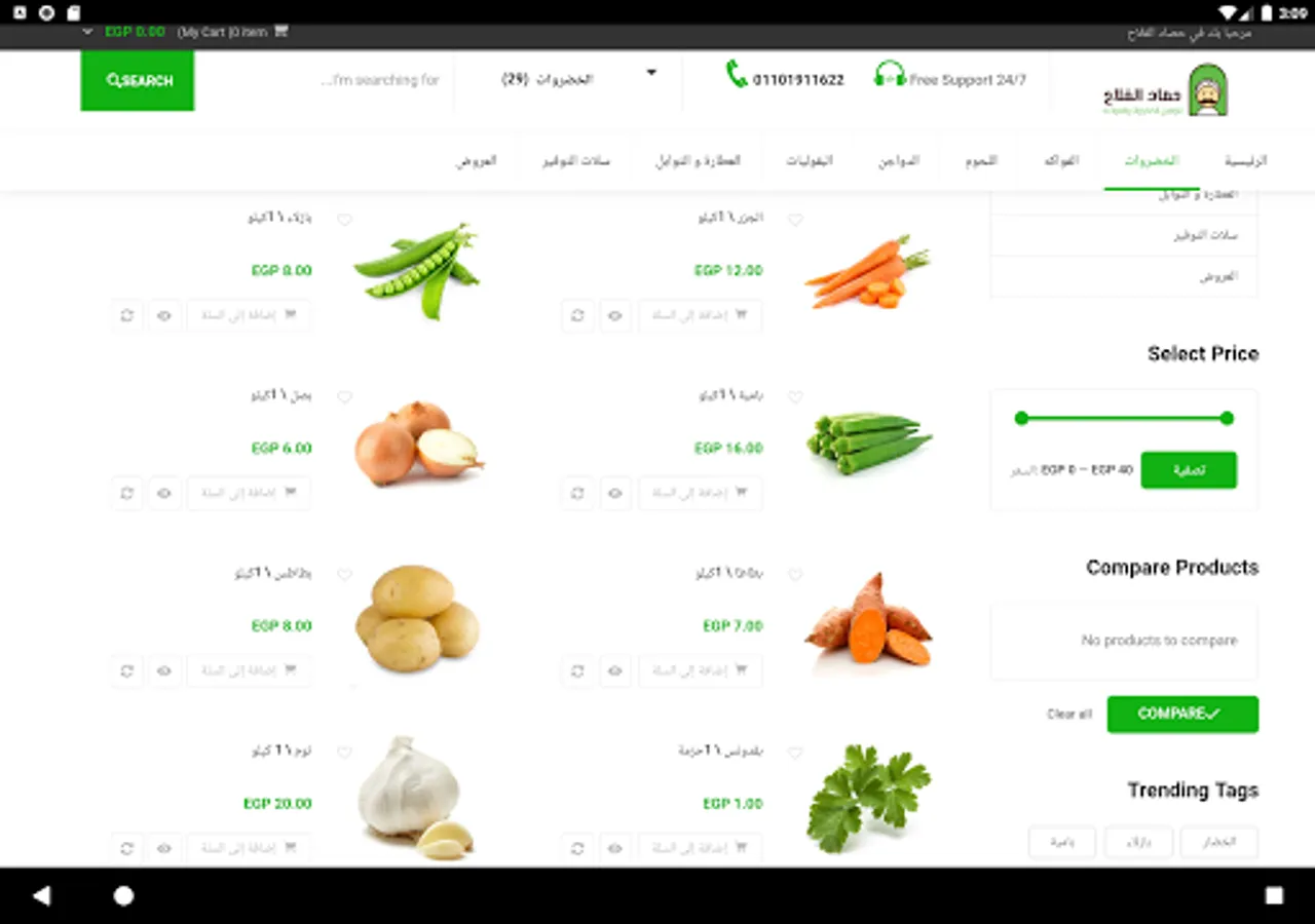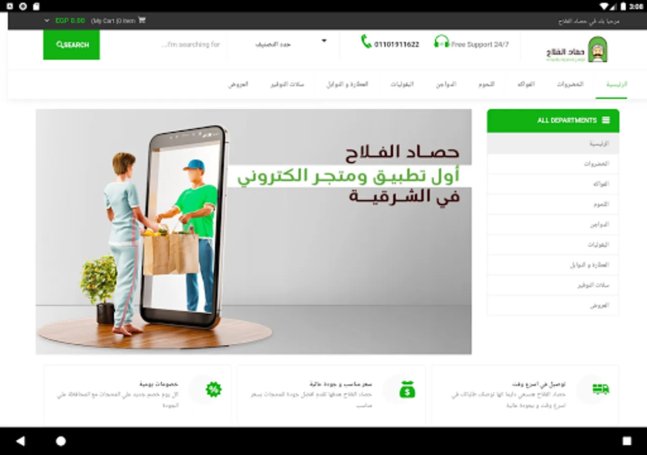 حصاد الفلاح تطبيق مختص في الخضروات و الفاكهة و اللحوم و المواد الغذائية المختلفة و هو التطبيق الاول في تقديم هذه الخدمة داخل محافظة الشرقية و قمنا بإنشاء تطبيق لتسهيل عملية طلب المنتجات علي الزبائن للوصول الينا بنقر واحدة من الموبيل