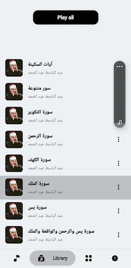 It contains selected surahs from the Noble Qur’an for the reciter Abdul Basit Abdul Samad