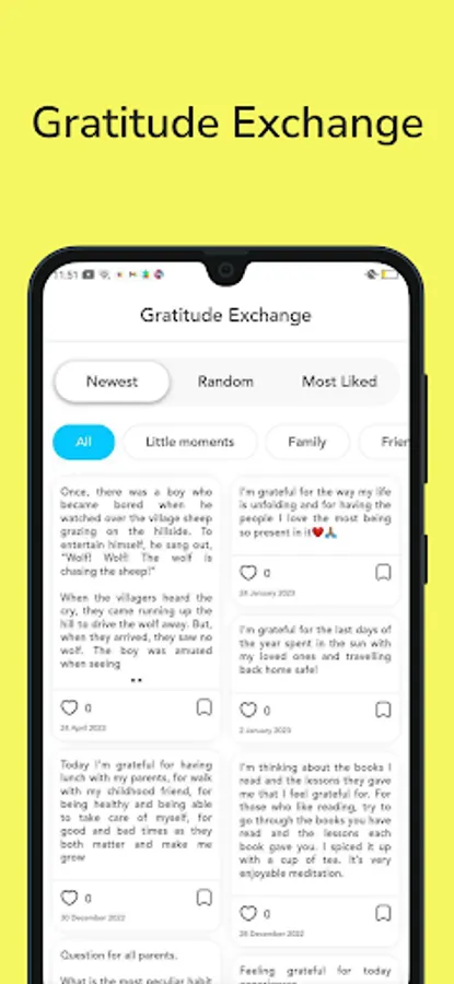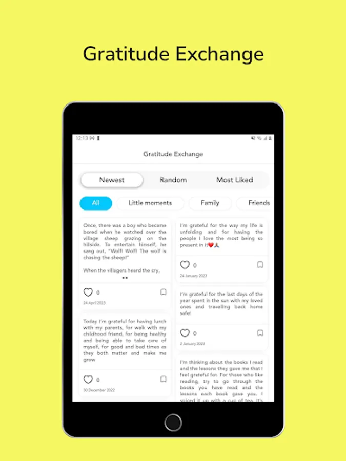 Experience and exchange gratitude with others in form of stories, write your own or read stories from other people, all done anonymously.