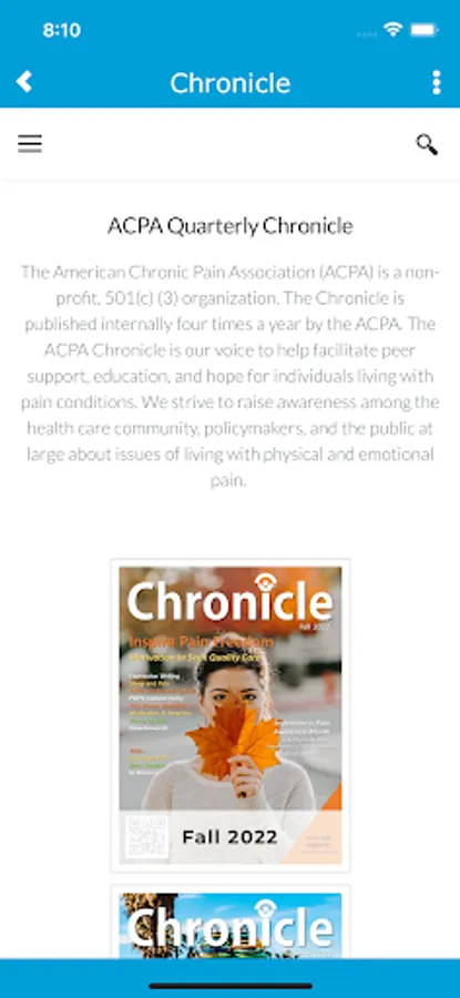 This app will facilitate peer support, education, and hope for individuals living with pain and those treating pain conditions. Our vision is to motivate those with pain conditions to seek quality care, to optimize healthcare office visits, and to prevent chronic disease.