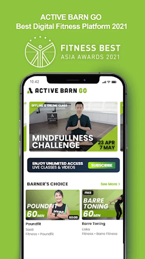 Active Barn GO is the most complete Indonesia Wellness Apps from fitness, yoga to mindfulness classes. We are recognised as the best Indonesia Digital Welness & Fitness Platform in 2021 by Fitness Best Asia