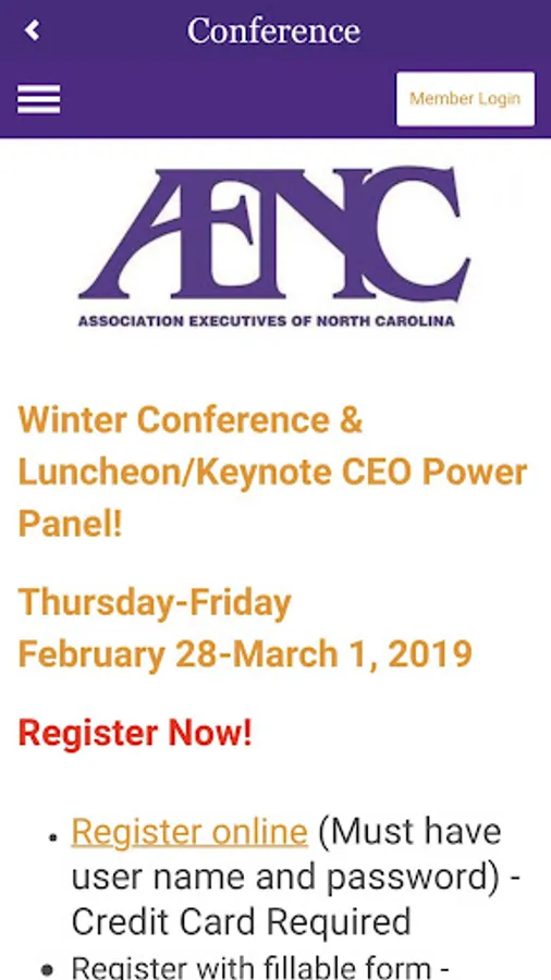 The Association Executives of North Carolina (AENC) is pleased to offer this new mobile app to further our mission of connecting our members to the educational and networking opportunities they desire. As the “association for associations” in North Carolina, AENC plays a critical role as an incubator of new ideas for the association industry. The AENC mobile app is an innovative approach to sharing educational content in a searchable and storable format, connecting members to one another to foster peer to peer engagement and connecting members directly to the goods and services their associations need every day.