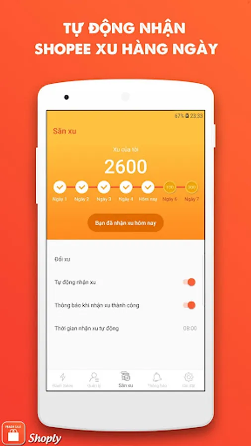► Support to receive daily coin automatically, with a huge number of Shopee coins you can exchange for countless promotions, vouchers on Shopee.