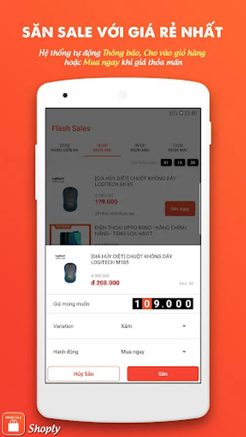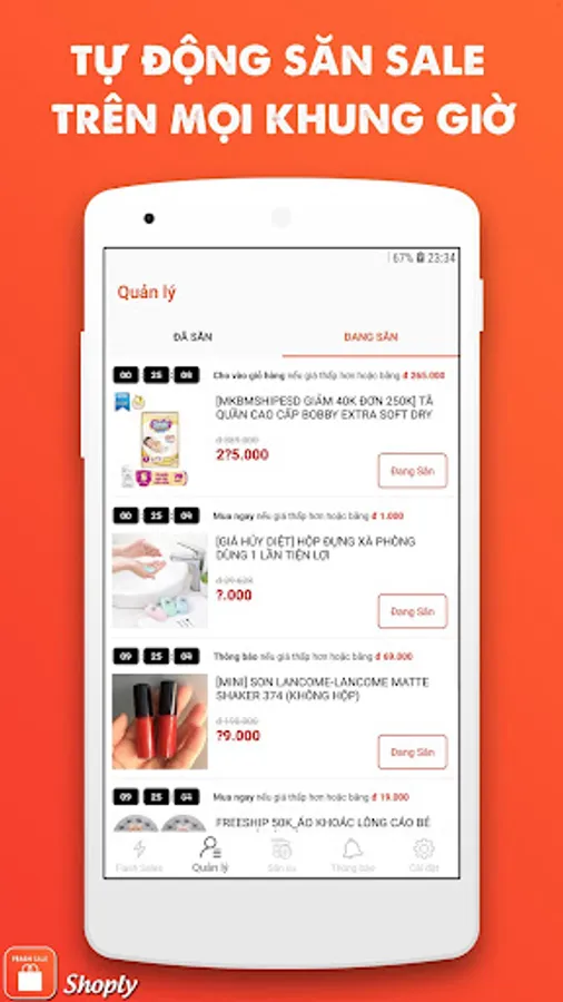 Shoply helps you set the desired price for Flash Sale products on Shopee. When Flash Sale opens if the product price is lower than or equal to your desired price, the system will automatically perform Flash Sale hunting by 1 of the 3 operations you choose: