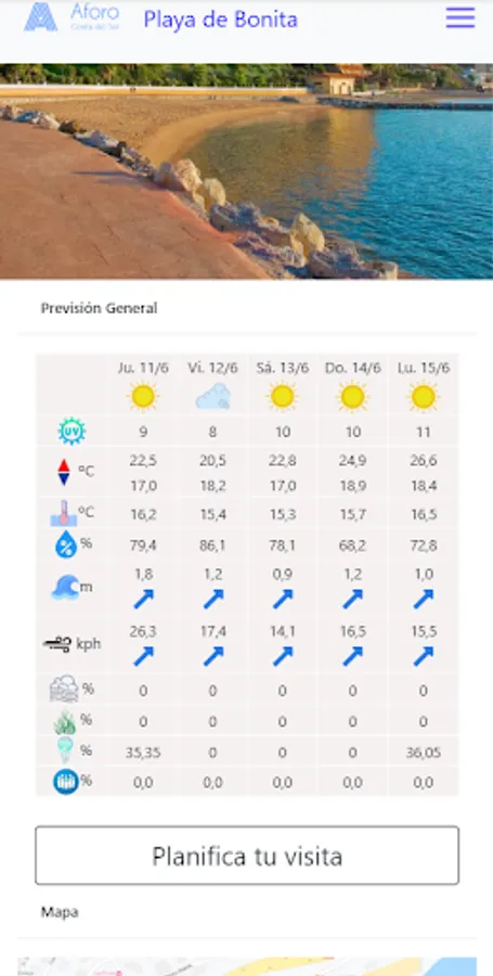 The application will allow to know in real time the occupation of the coastline, as well as aspects related to water temperature, the presence of algae or wind speed.