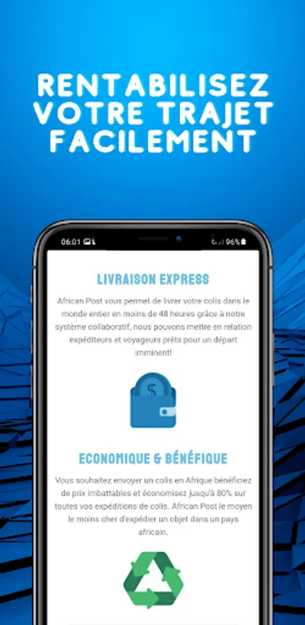 Installez AfricanPost vous permet de livrer votre colis en Afrique et dans le monde entier en moins de 48h grâce à notre système collaboratif nous pouvons mettre en relation expéditeurs et voyageurs prêts pour un départ imminent ! Bénéficiez de prix imbattables & économisez jusqu'à 80% sur tous vos envois.