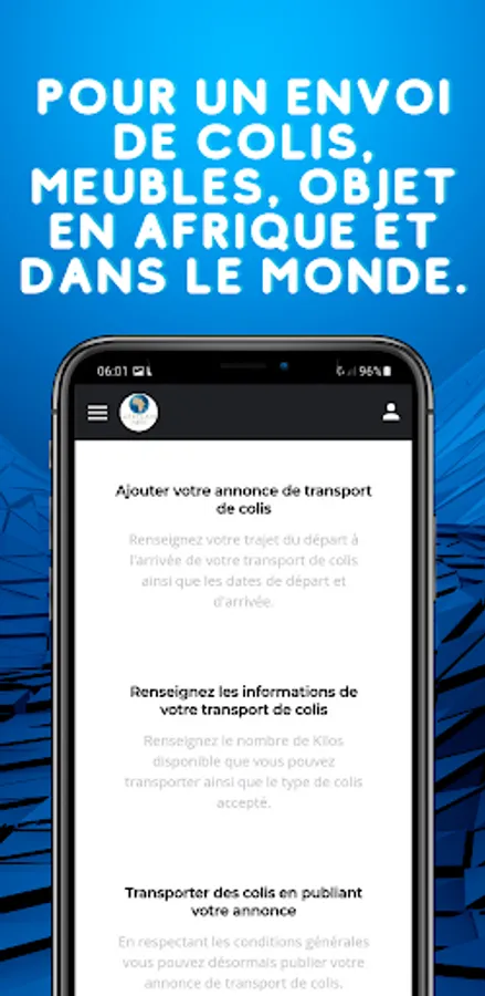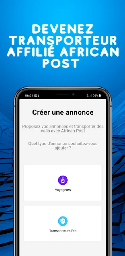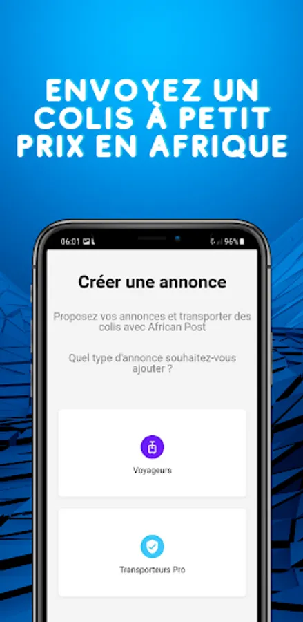 African Post est une plateforme pour votre activité de transporteurs. Rendez votre société de transport plus visible et générez plus de revenus grâce à notre solution d'envoi de colis. Déposez une annonce ou un trajet en quelques clics gratuitement pour une mise en relation direct avec les envoyeurs de colis vers l’Afrique et dans le monde entier.