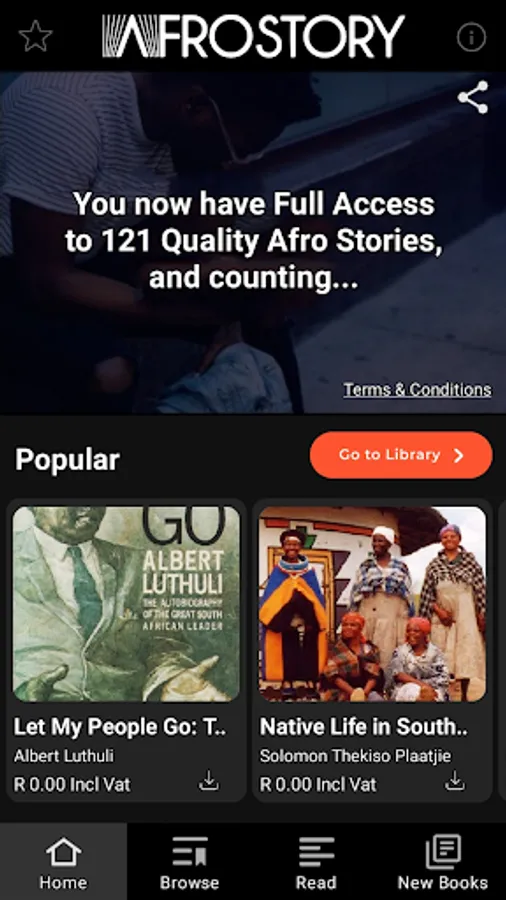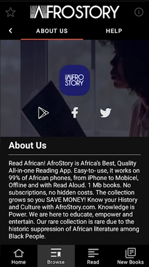 AfroStory's All-in-one Quality Reading App offers a Free and Convenient, Rare Collection of 130 (and counting) Afro-Centric Classic Books to read, offline, on 99% of African Phones. No Ads or Subscriptions. For all Tastes and Ages, plus Classic Textbooks for African Students. Expand your horizons and imagination today!