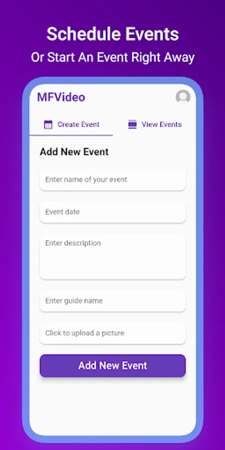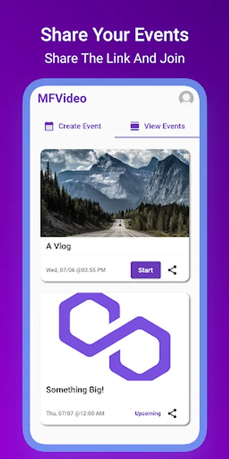 - Host events at any time. Create an event and share the link with your audience.