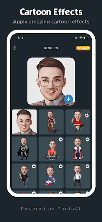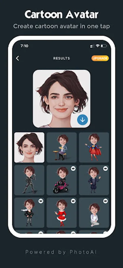 Only a few taps that you can turn your picture into a cartoon, no graphic design skills required. Just upload a selfie and choose the best cartoon filter and character that you want.