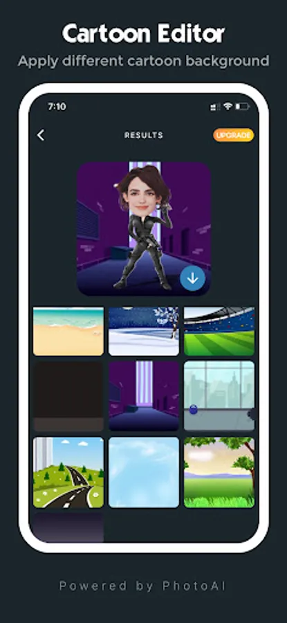 - Quite a lot of different cartoon backgrounds that you can choose from. Make your result different!
