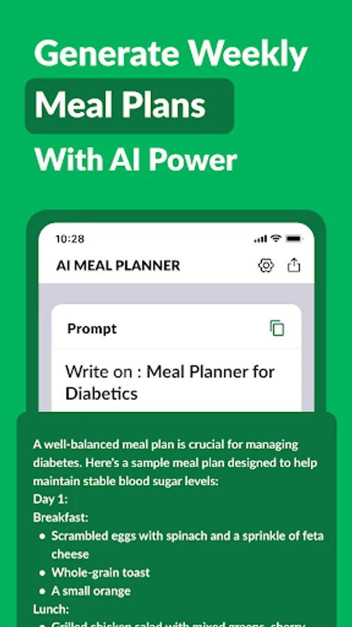Embark on your weight loss journey with confidence. Let the app create balanced meal plans that focus on portion control and nutrient-rich options.