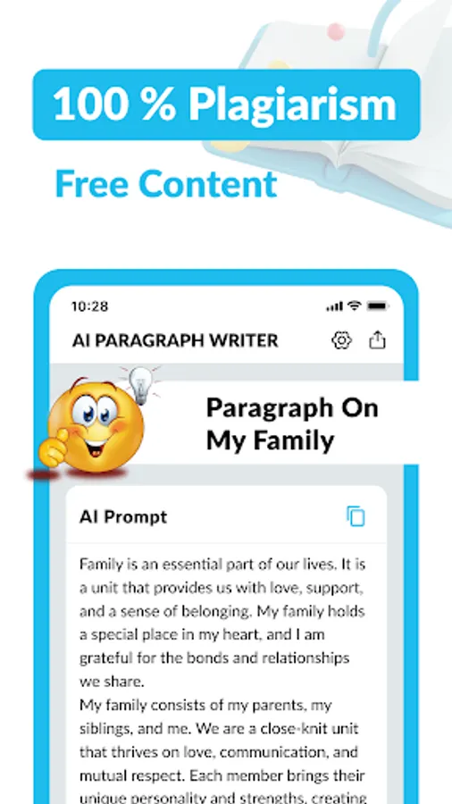 Unlocking a world of possibilities, this app utilizes cutting-edge AI technology to provide you with a seamless and intuitive writing experience. With just a few taps, you can instantly generate well-structured paragraphs on any given topic. Gone are the days of staring at a blank screen, struggling to find the right words. AI Paragraph Generator, Writer takes the guesswork out of writing and empowers you to create polished and engaging content in no time.