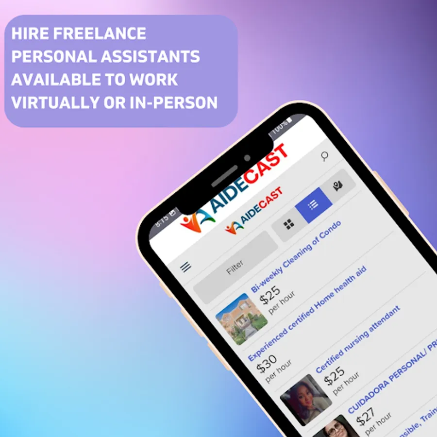 Join the AIDECAST Marketplace to offer Freelance Personal Assistance to clients or join as a Client to hire Freelance Personal Assistants or Caregivers virtually or in-person. Find Home Health Aides with experience caring for clients living with Dementia, Cancer, Parkinson's Disease, and Hospice Care. Get help with Housekeeping, Personal Care, Meal Preparation, Medical Appointments, and so much more.