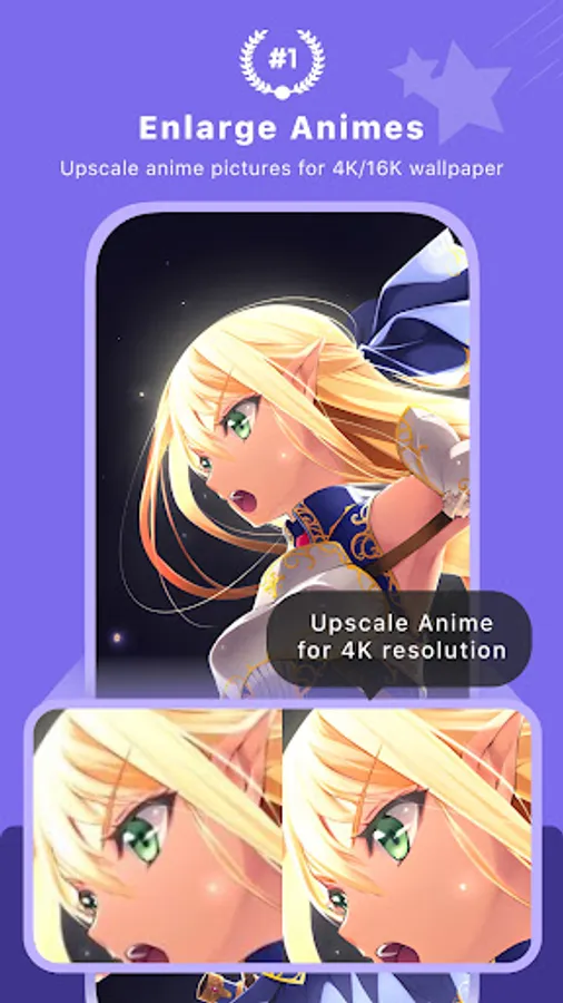 - Upscale anime pictures for 4k, 8k, 16k wallpapers. Customized and optimized animation and cartoon picture upscaling algorithm, maintain the most accurate color, faster speed, and better quality than Waifu2x and Yome2x