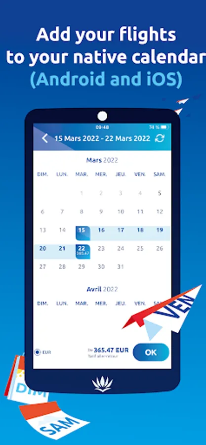Use the flight search to view the most interesting fares for travel on Air Caraïbes directly in a calendar and accept our geolocalized notifications as soon as you install the application.