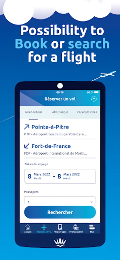 Air Caraïbes mobile app brings together, for you, all the useful features to accompany you throughout your trip, from its conception to your arrival at your destination! To do this, it evolves according to the different stages or moments of your trip.
