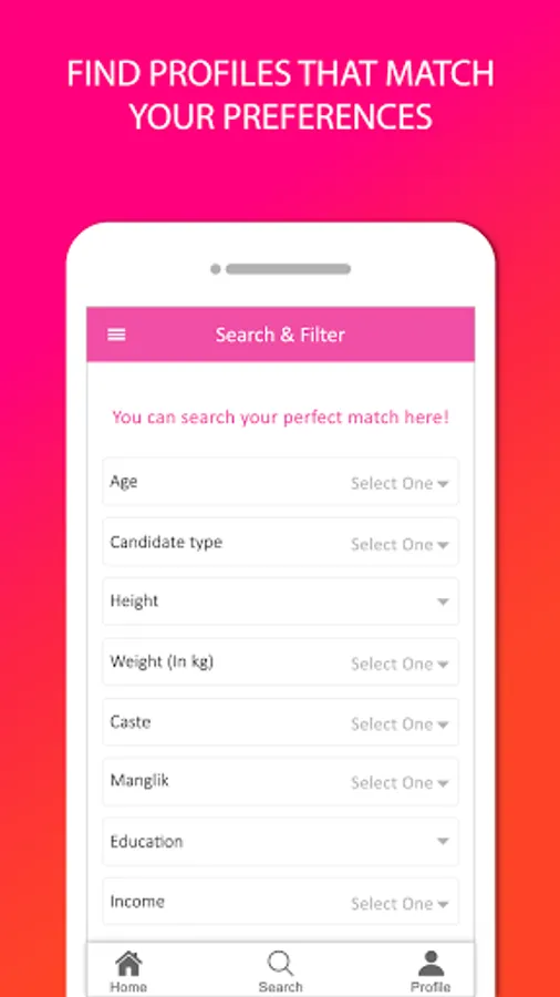 This Feature is present in every profile you view inside the app. It allows you to connect with the profile you like by clicking “Show Interest” button.