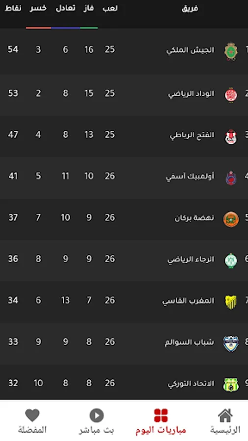 Our application provides the Moroccan league standings, updated immediately after the end of matches