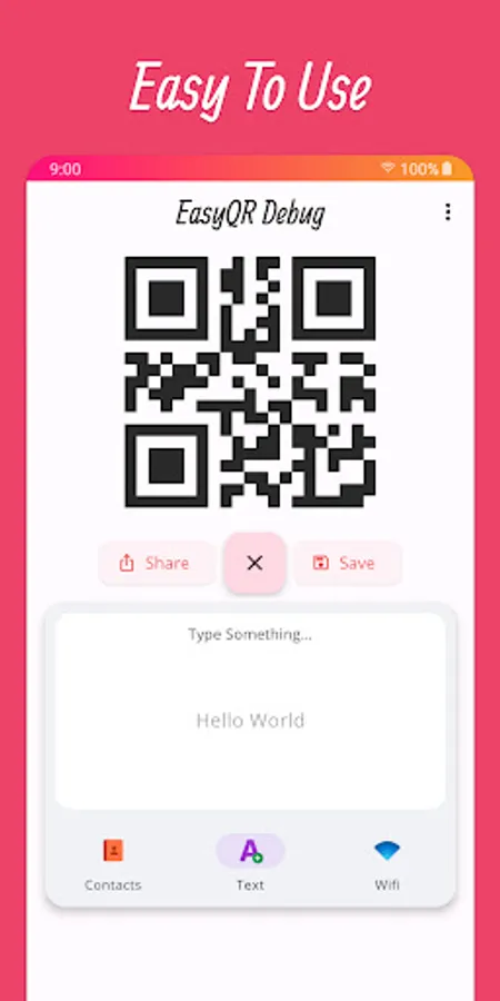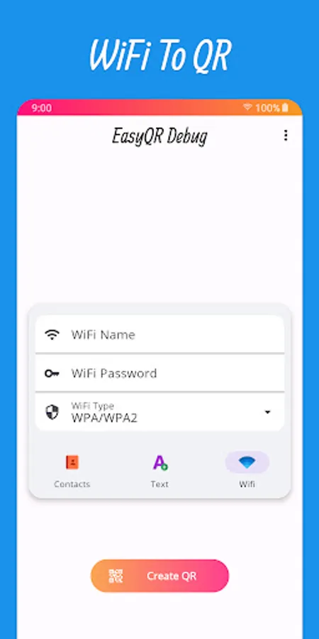 EasyQr is a simple Application to create a QR code for your data and Contacts or your WiFi in an easy Way also save QR image on your device and shares QR images whatever you want.