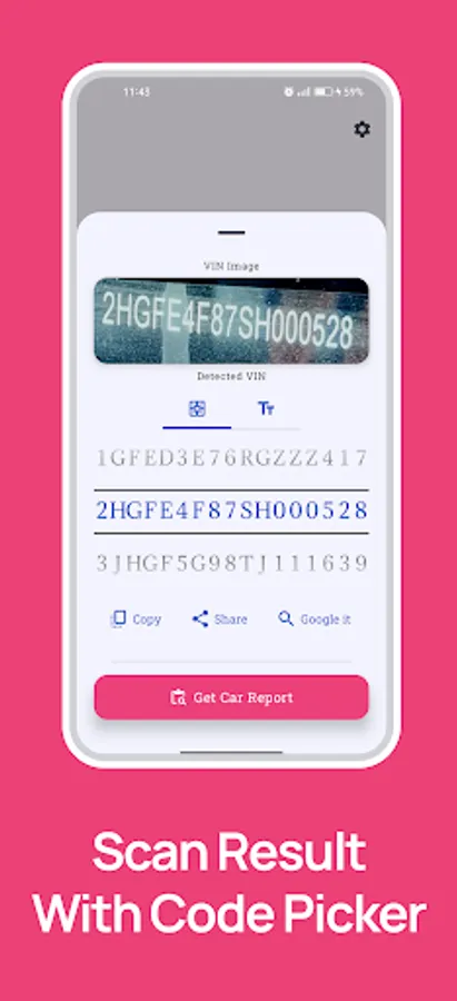 VIN Code Scanner Screenshots