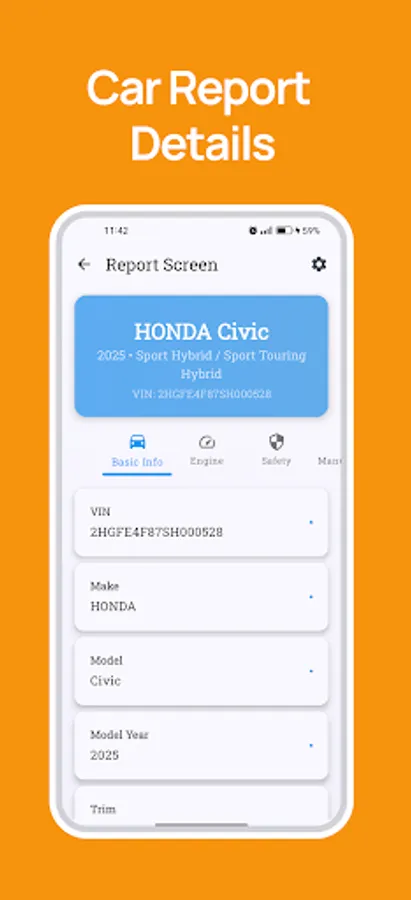 💾 Save Reports – Keep your vehicle reports for future reference.