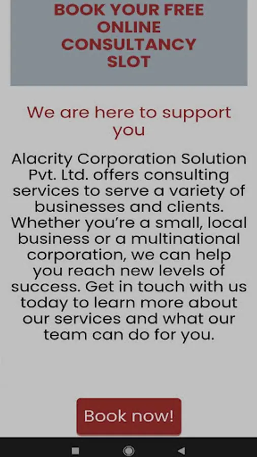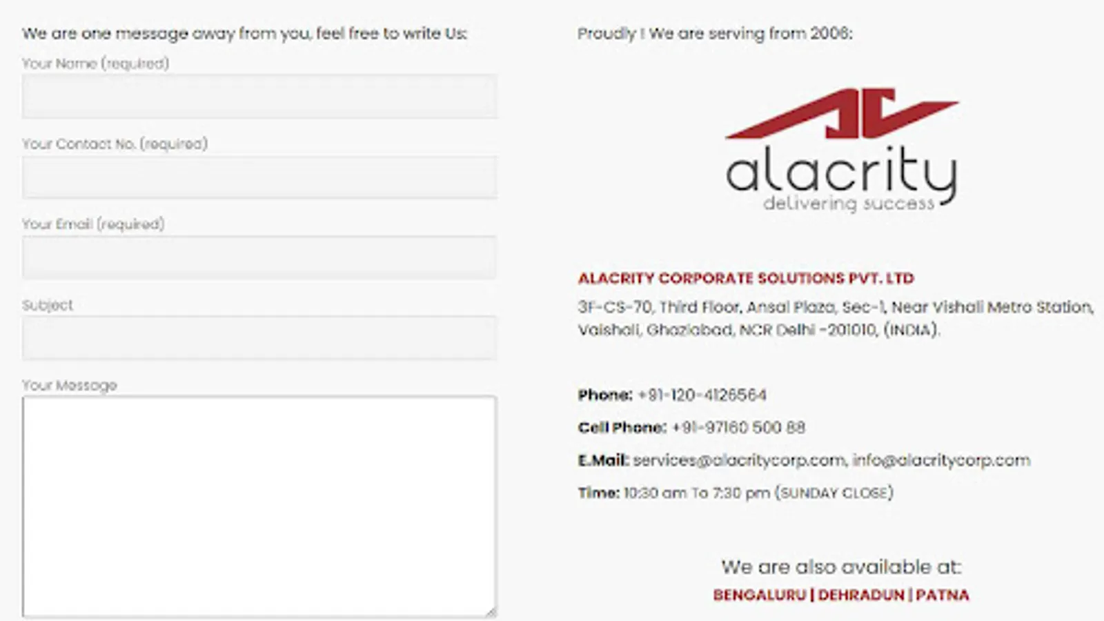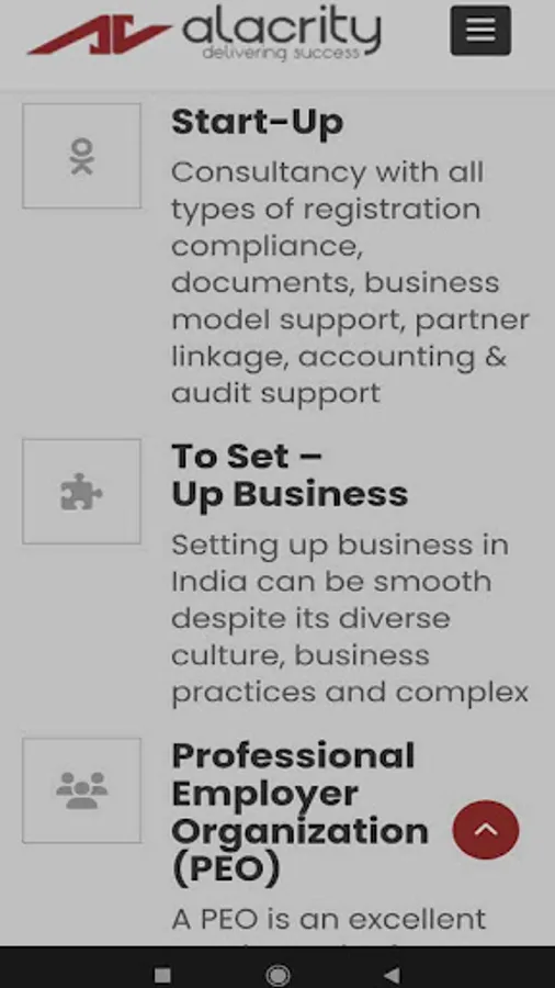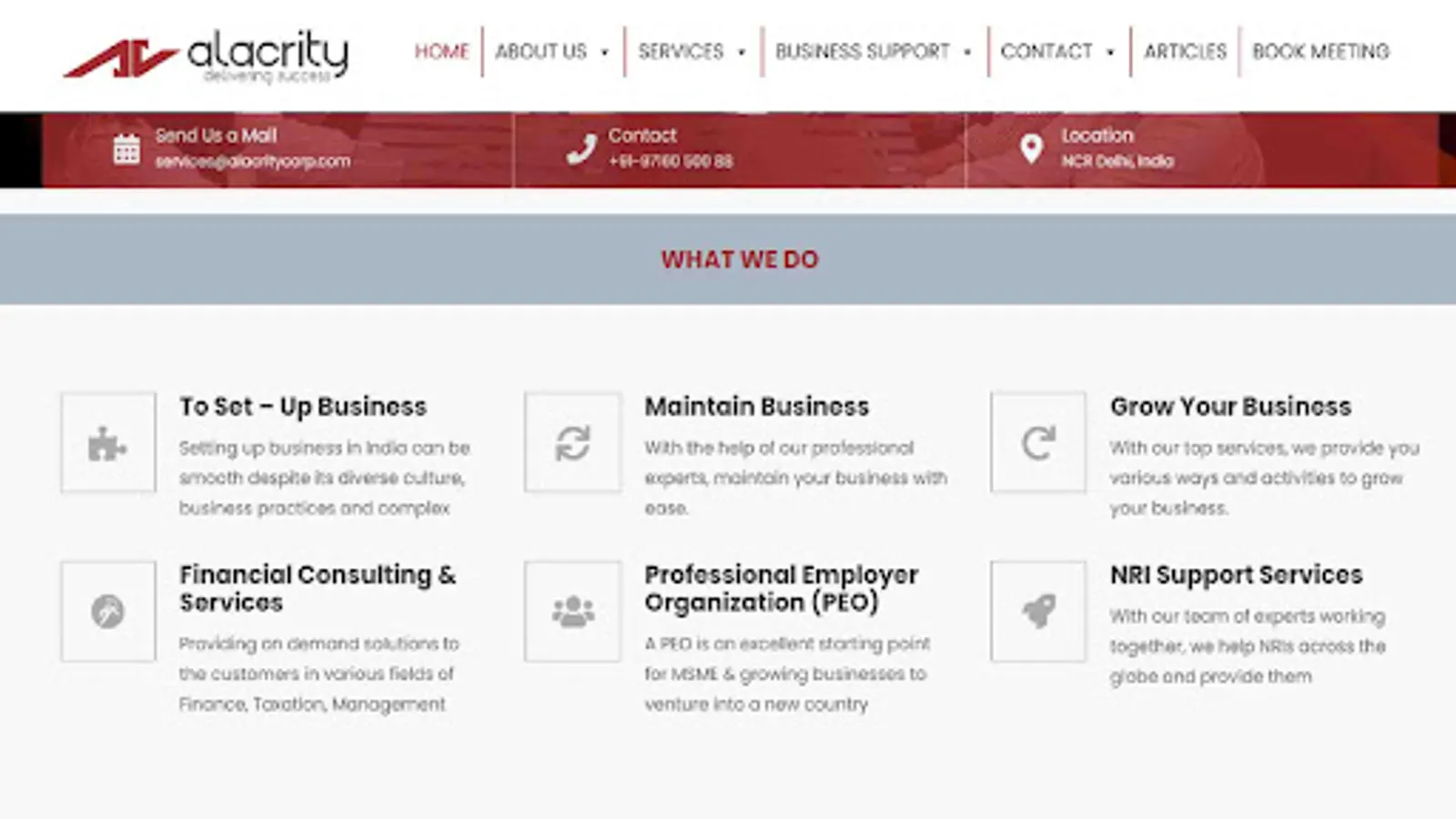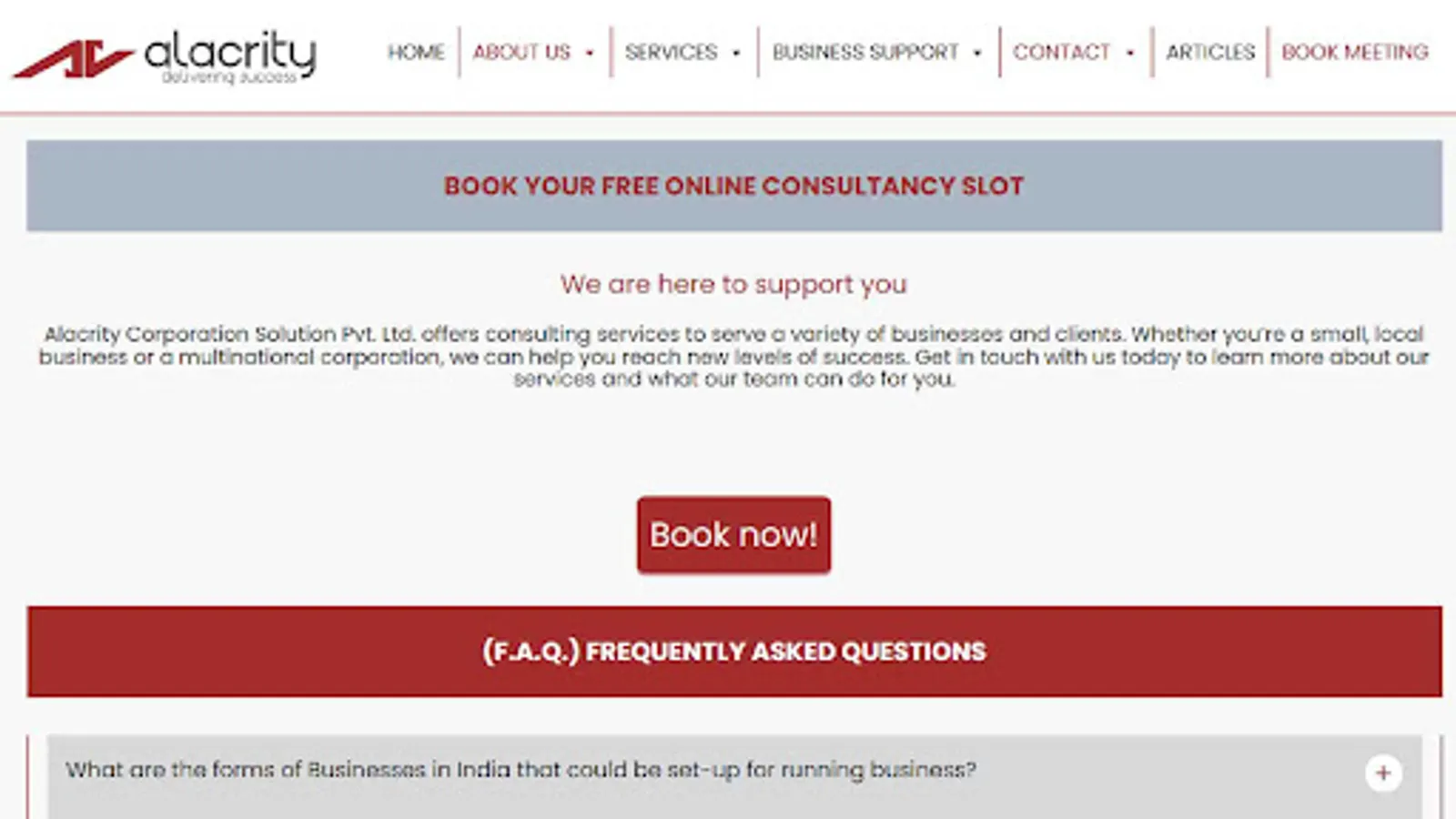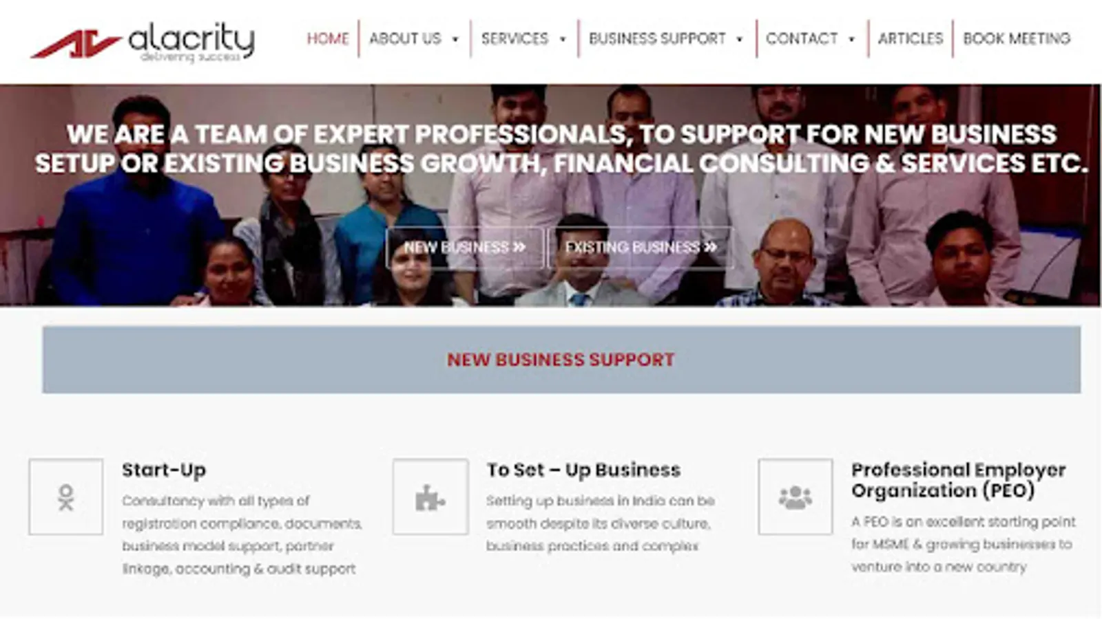 Alacrity Corporate Solutions Pvt. Ltd. is a multi-disciplinary consulting company started in 2006 to help entrepreneurs grow and attain success in their venture. It combines knowledge and experience of diverse consultants across domains and across geographies to support business sail through complex non-core issues such as accounting, legal compliance, managing HR issues, valuations, representation and liaison with departments and government bodies. We ensure our clients are focused on principal core economic activities to generate revenue for them and becomes prosperous while we aid them with our knowledge and domain expertise. That is why we have our tagline “fostering prosperity through knowledge” and we believe in delivering success.