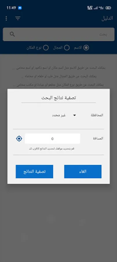Search for what you want, the results will appear for you in the working hours now, and with the click of a button, you can contact him immediately, and with a click, you will see his exact location on the map, the distance between you, the easiest way to reach and the closest path to reach your goal.