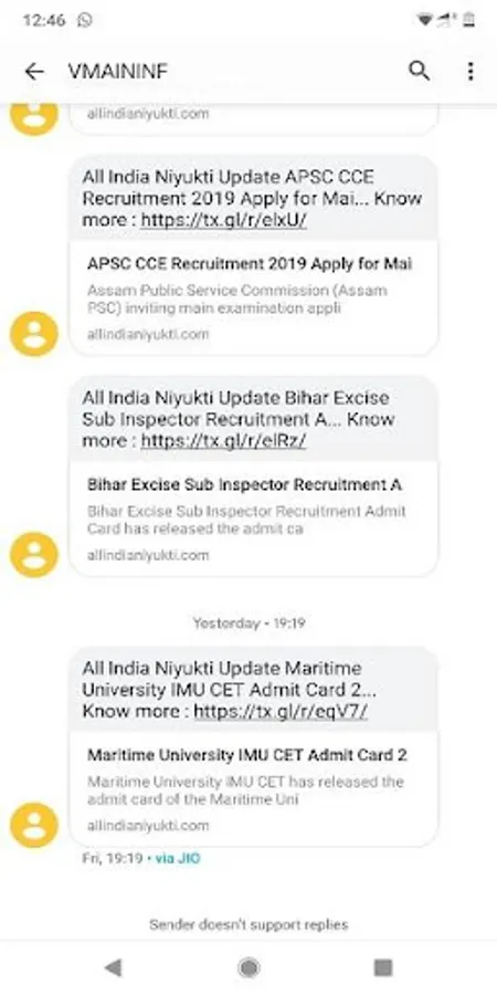 You will get SMS messages regarding the Vacancies ,admit Cards , Results on your cell phone within few minutes of releasing the official circular by the respective departments. This SMS will redirect you to our website which will consist of starting date and closing date, official notifications number of vacancies category wise eligibility ,Age limit and all other important relevant information.