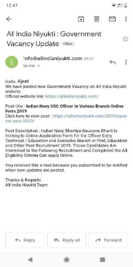 We have developed an android application named as All India Niyukti (AIN) which is available on the Google Play store for your convenience, you can download it from there and avail our services for free of cost , So!! Rush here and download it.