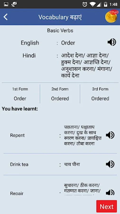 • Well-designed Course: This English speaking App has been divided into 4 parts Basic, Advanced, Expert, and Practice.