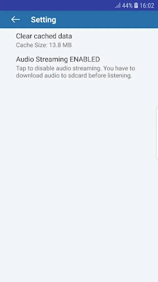 + Audio streaming: Disable - must download audio file first and listen it offline
