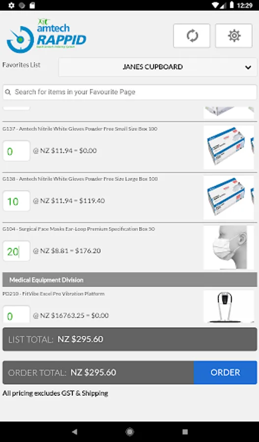 Login with your amtech.co.nz username and password. You can now order products from your favourites list is seconds.