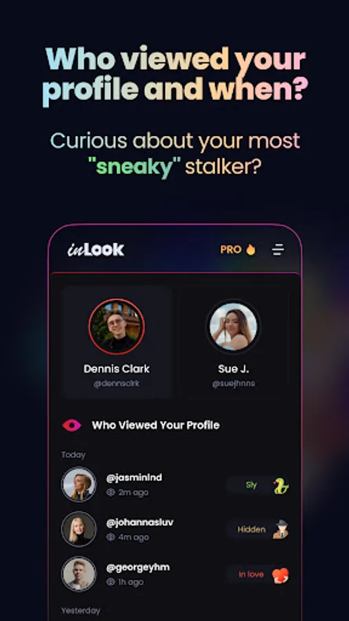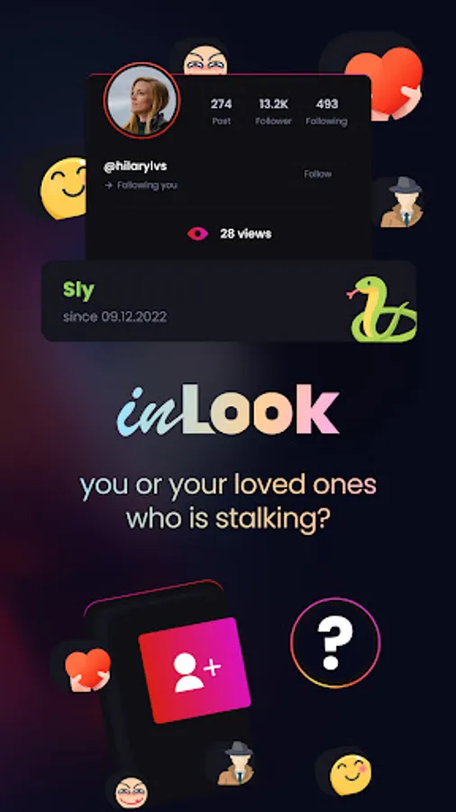 With inLook, you can analyze your followers and view 10 different follower models. Who is the best friend of your friend or lover, who is stalking them? You can even analyze both profiles in one application.