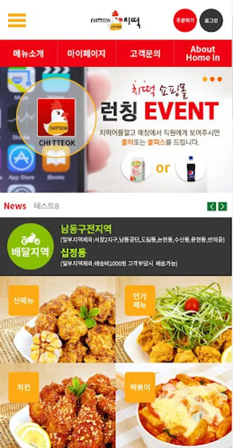 홈인치떡(치킨,떡볶이 배달 전문) Screenshots
