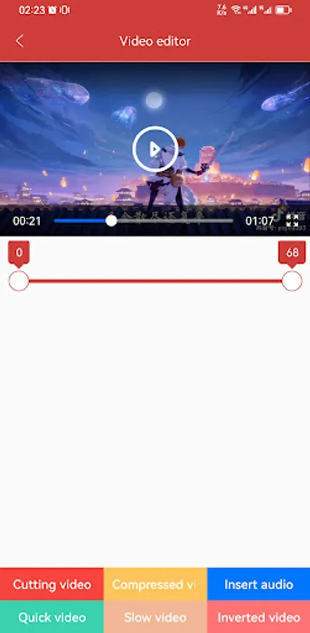 Video editor: Support cutting video, compression video, inserting audio, fast -to -video video, slow video, and upside -down video;