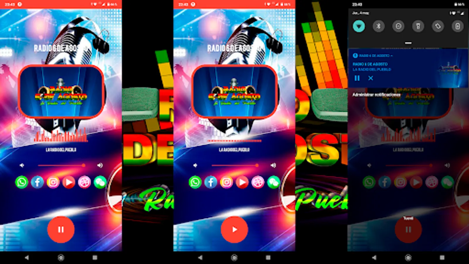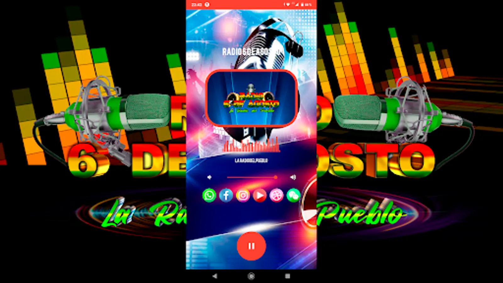 RADIO 6 DE AGOSTO LA RADIO DEL PUEBLO IS A LIVE RADIO APPLICATION THAT TRANSMITS LIVE MUSIC AND PROGRAMMING 24 HOURS EVERY DAY FROM LOMAS DE ZAMORA, OLIMPO, BUENOS AIRES, ARGENTINA TO THE WHOLE WORLD.