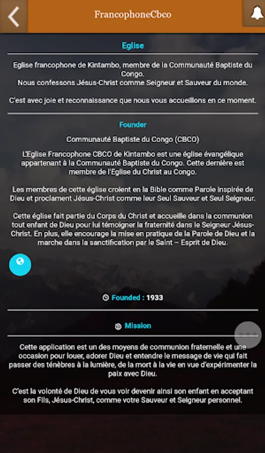 L'application vous permet d'emmener l’Eglise francophone CBCO Kintambo partout avec votre smartphone android.