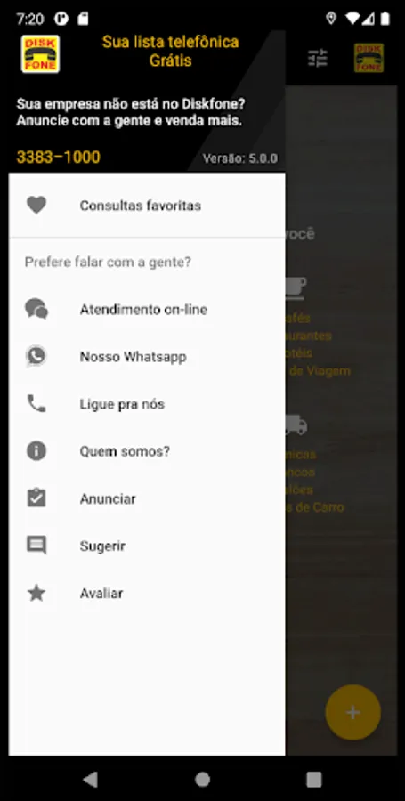 Diskfone is the evolution of the phone book yellow pages. This information service is free and can be accessed by calling (16) 3383-1000, through this App and also through the website www.diskfone.com.br.