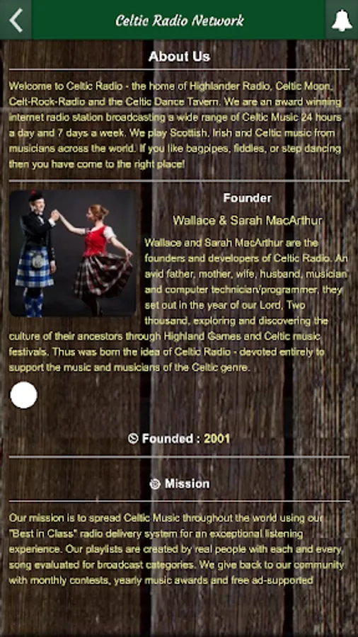 Welcome to the original Celtic Radio - the home of Highlander Radio, Celtic Moon, Celt-Rock-Radio and the Celtic Dance Tavern. We are an award winning internet radio station broadcasting a wide range of Celtic music 24 hours a day. We play Scottish, Irish and Celtic music from musicians across the world. If you like bagpipes, fiddles, or step dancing then you have come to the right place!