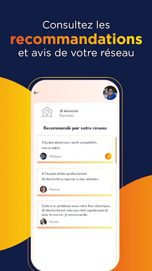 ● Publiez vos propres recommandations et faites connaître vos prestataires préférés à votre réseau.