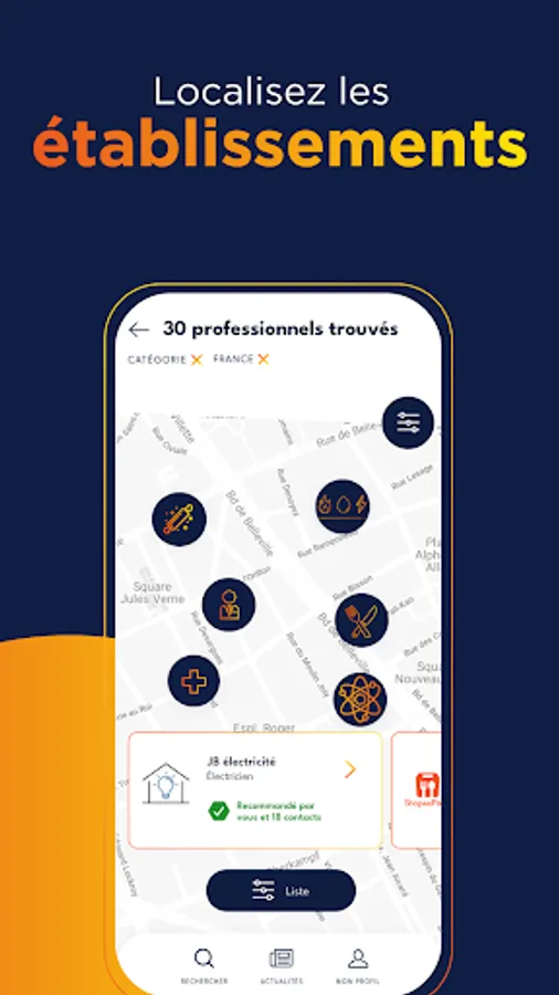 ● Trouvez tous vos prestataires en toute confiance : restaurants, commerces, artisans, santé, prestataires de service…