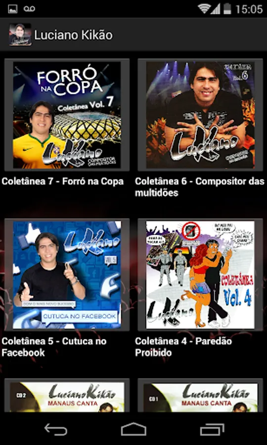 Another advantage you will have full access to all the complete collections, the composer Luciano Kikão and can hear track by track. It will also be available CDs and complete several bands of forró Dvds, bolero and countryman Luciano Kikão in the application, where you can check the "Band" menu.